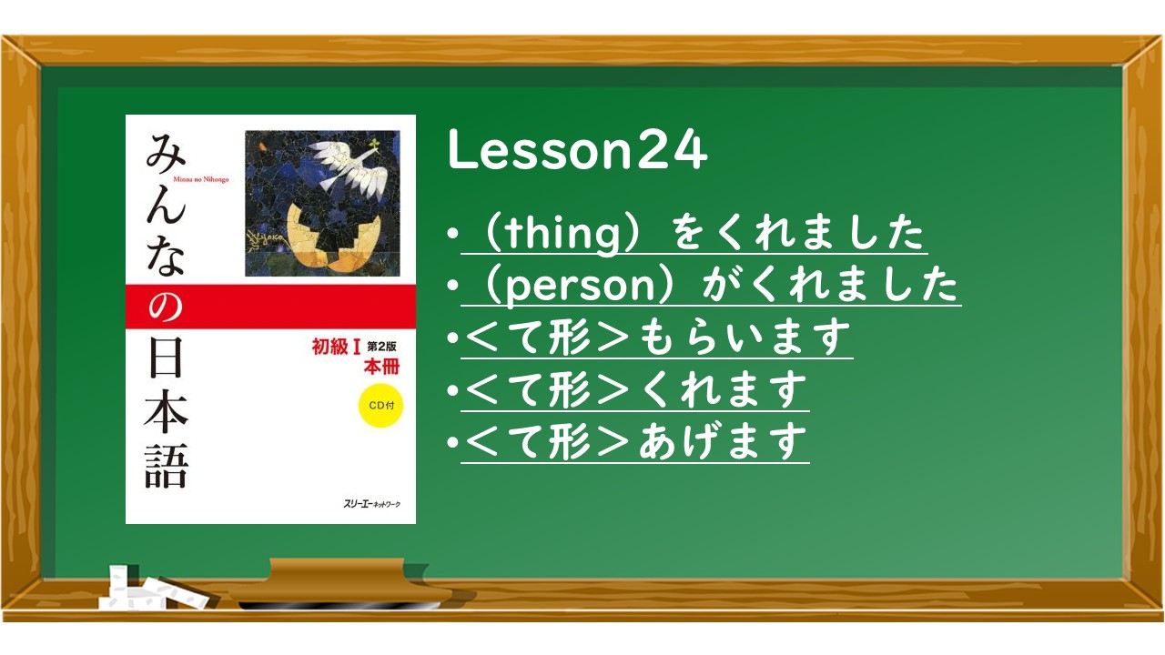 - In Lesson 7, you learned that あげます means“to give.”However, あげます cannot be used when someone gives something to you (the speaker).