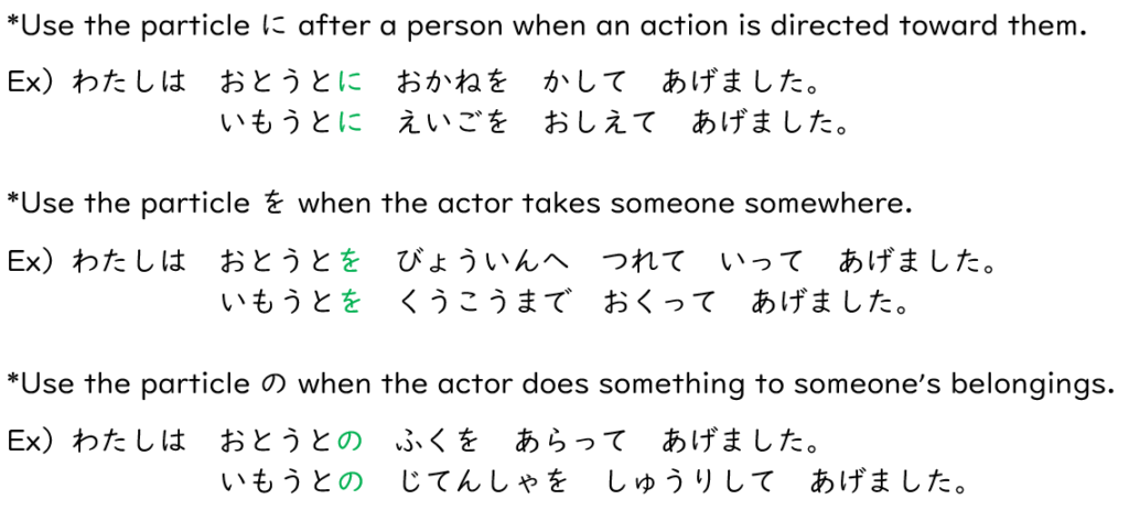 [Noun(person)]に/を/の[て-form]あげます